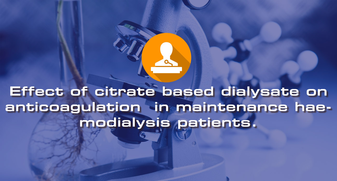 Backround: During haemodialysis (HD), blood is exposed to an extracorporeal circuit which activates thrombogenic pathways and clotting and may be associated with increased inflammation and acceleration of atherosclerosis. Even subclinical clotting of the dialysis circuit may reduce effective dialyser surface area and pore size, decreasing both small and middle solute clearance. An alternative to systemic heparin anticoagulation for HD is citrate dialysate (CD) which contains a small amount of citric acid. Aim of our study was to investigate whether CD results in reduced cumulative heparin dose (CHD) compared to acetate dialysate (AD) in HD patients.