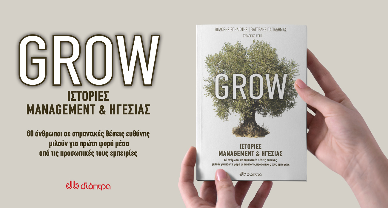 Βρείτε στις 27 Μαΐου σε όλα τα βιβλιοπωλεία ένα ξεχωριστό βιβλίο management και ηγεσίας. Πρόκειται για το συλλογικό βιβλίο Grow – Ιστορίες Management & Ηγεσίας που κυκλοφορεί από τις εκδόσεις Διόπτρα αποτελεί μία συγγραφική προσπάθεια δημόσιας έκφρασης και συλλογικής εμπειρίας ανθρώπων που βρίσκονται σε καίριες και σημαντικές θέσεις ευθύνης ή ηγεσίας ομάδων όσο αφορά το Management. 60 άνθρωποι σε σημαντικές θέσεις ευθύνης μιλούν για πρώτη φορά μέσα από τις προσωπικές τους εμπειρίες και ο Ιωάννης Γριβέας είναι ένας από αυτούς.
